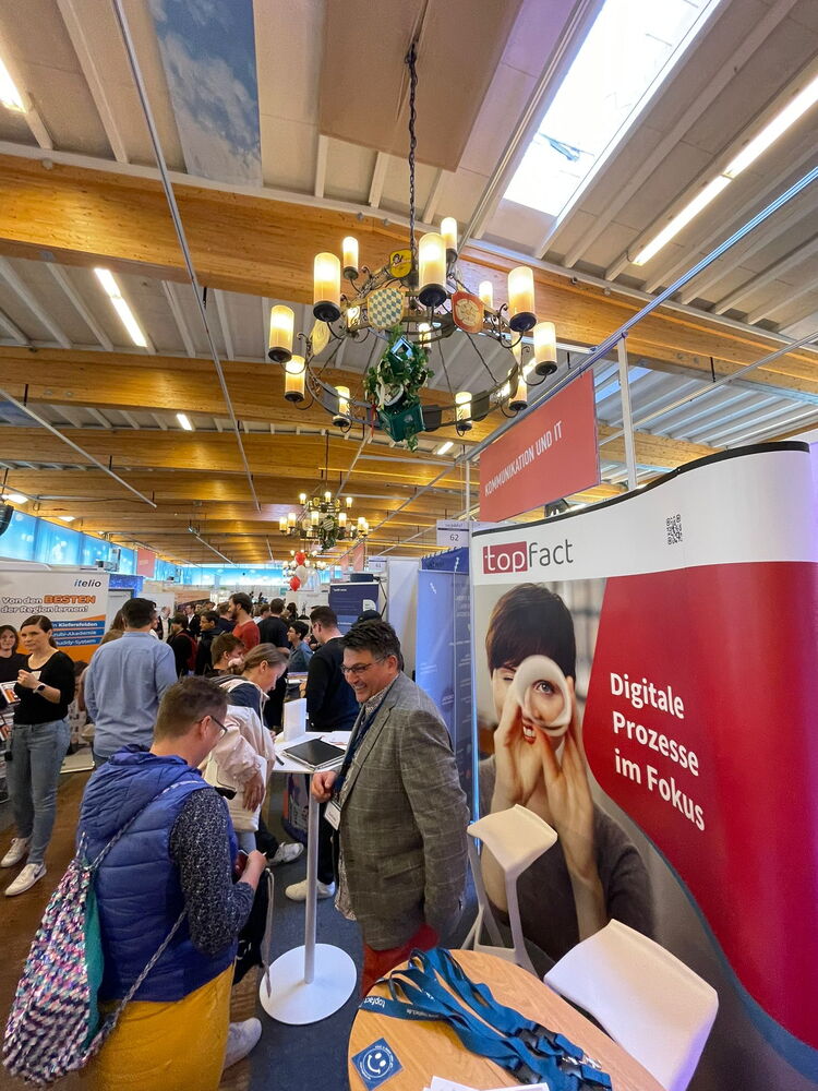 Unser Vorstand Detlev Eberhardt ließ es sich nicht nehmen, persönlich vor Ort zu sein. Unterstützt von unserem Auszubildenden informierte er engagiert über unsere Ausbildungsangebote in den Bereichen „Fachinformatik Anwendungsentwicklung“ und „Kaufmännisches Digitalisierungsmanagement“ und der neuen Option eines dualen Studiums der Wirtschaftsinformatik, welches ab diesem Jahr angeboten wird. Die Kombination aus praktischer Ausbildungserfahrung und der unternehmerischen Perspektive stellte den perfekten Mix dar, um die Messebesucher für die Themen zu sensibilisieren und sämtliche Fragen zu beantworten.